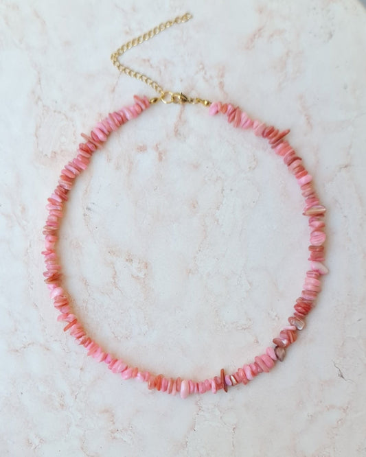 Stone Chips Choker & Bracelet Set - Rose Quartz