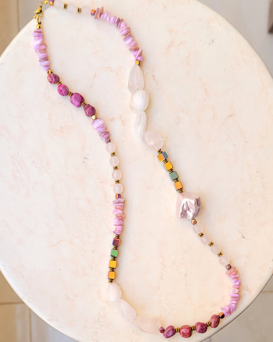 Stones & Natural Pearl Barbie Necklace