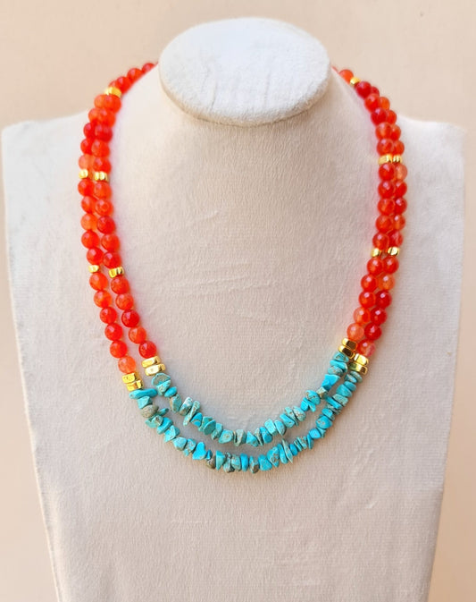 Two Layers Agate Necklace With Turquoise Stone Chips