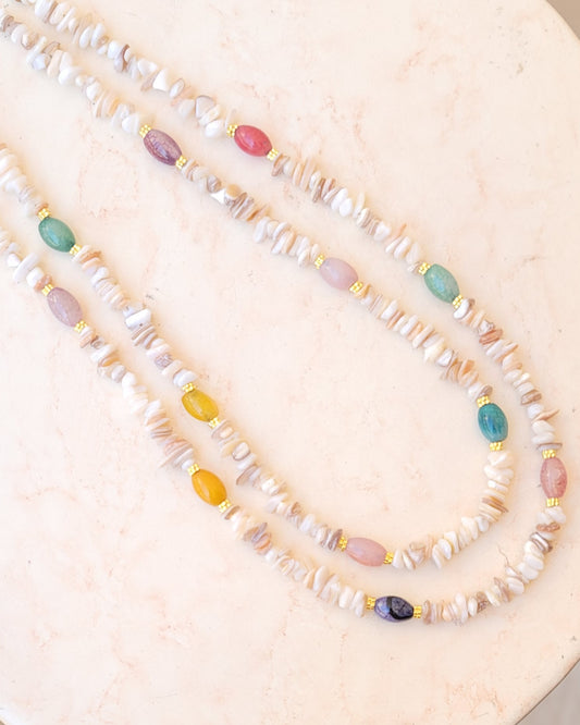 Two Layers Stone Chips & Agate Necklace