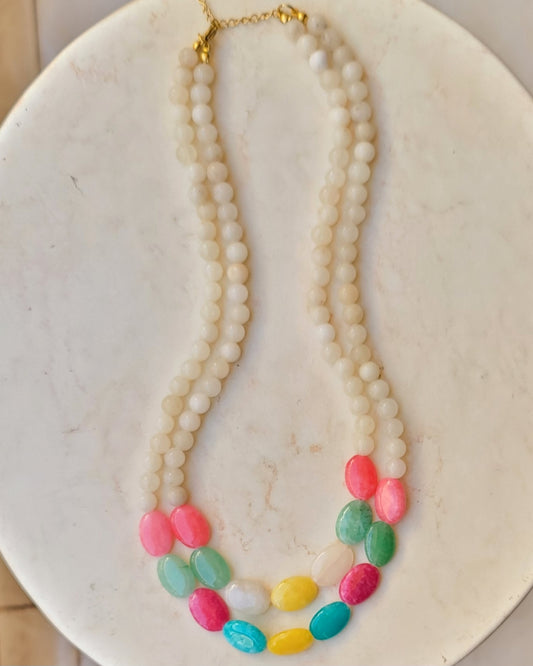 Two Layers Agate & Stones Bubblegum Necklace