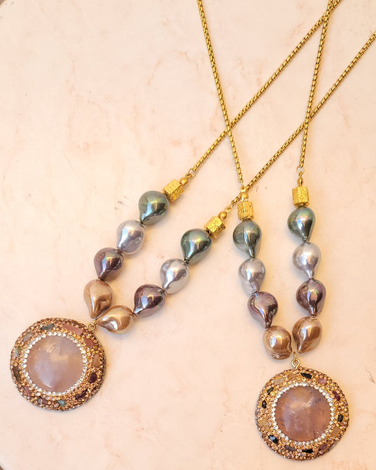 Colored Shell Pearl Necklace With Natural Stone Pendnat