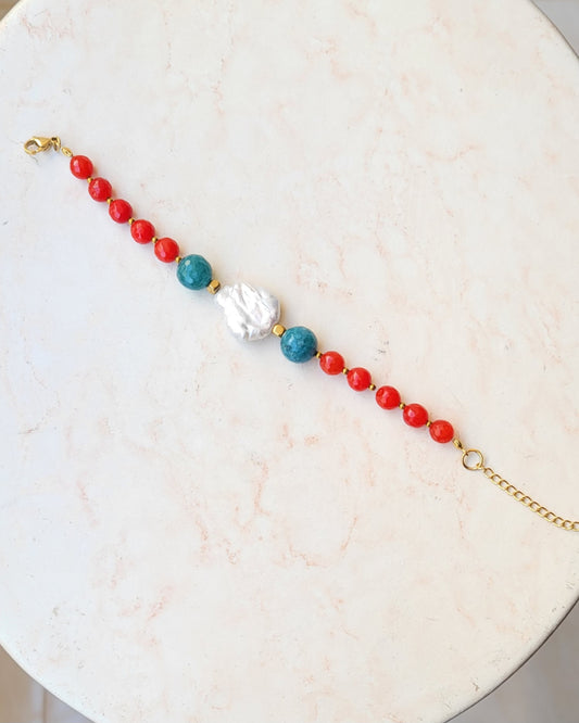 Colorful Agate & Freshwater Natural Pearl Bracelet