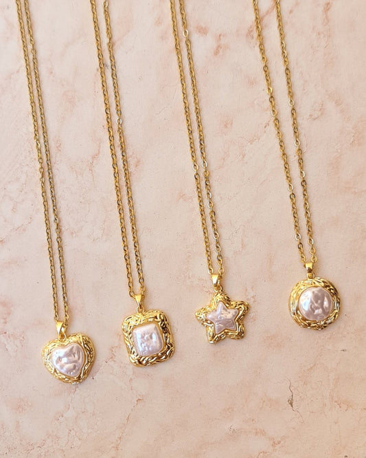 Stainless Steel Chains With Gold Plated Pearl Pendants