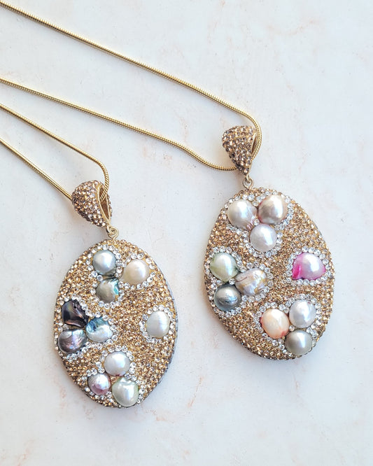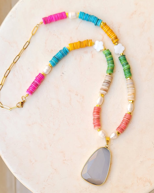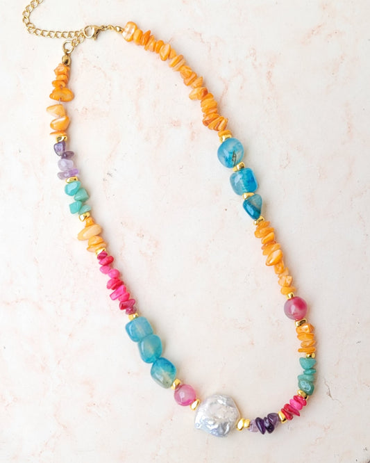Colorful Stones & Natural Pearl Necklace