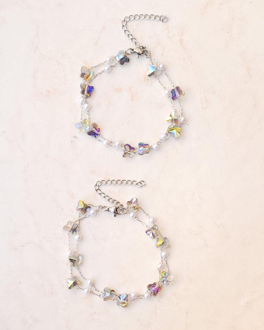 Two Layers Silver Plated Crystal Stone Bracelet