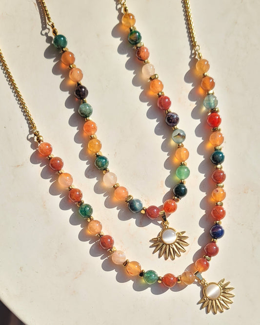 Two Layers Agate Stones & Shell Necklace