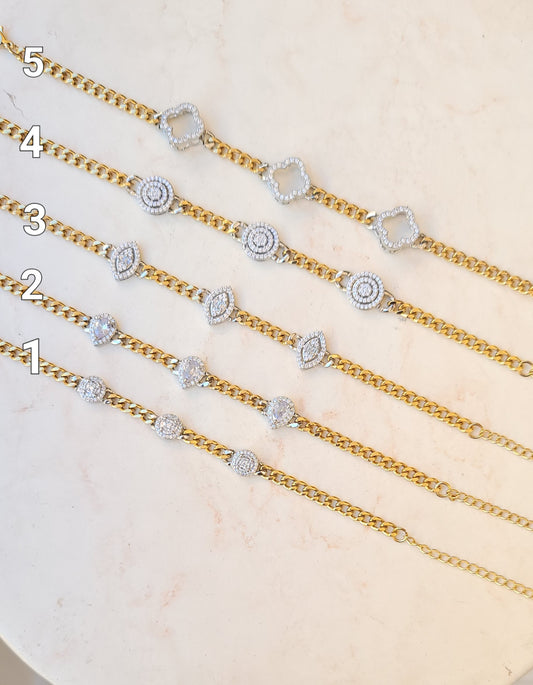 Gold Plated Stainless Steel Bracelets With Zircon Stones