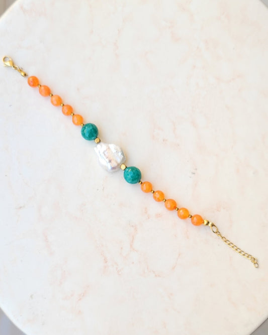 Colorful Agate & Freshwater Natural Pearl Bracelet