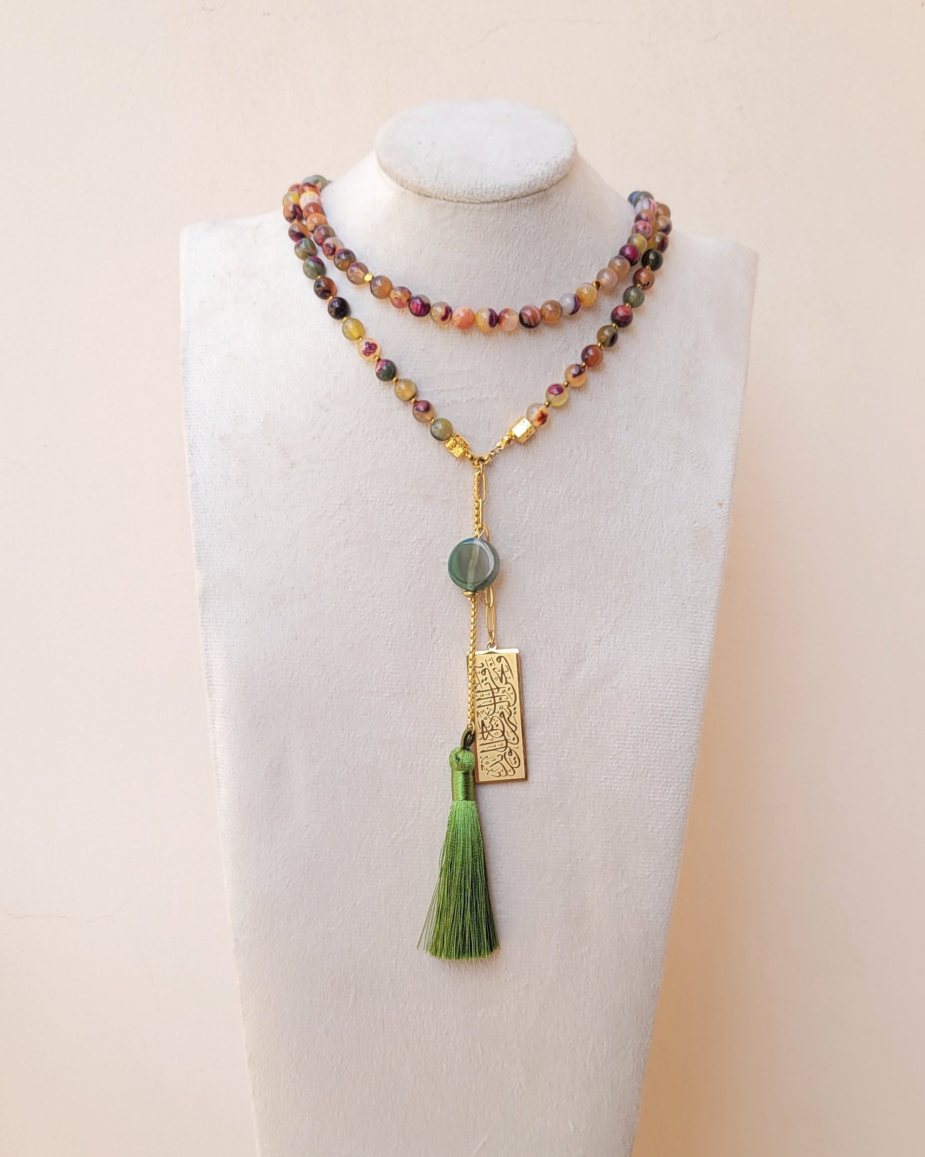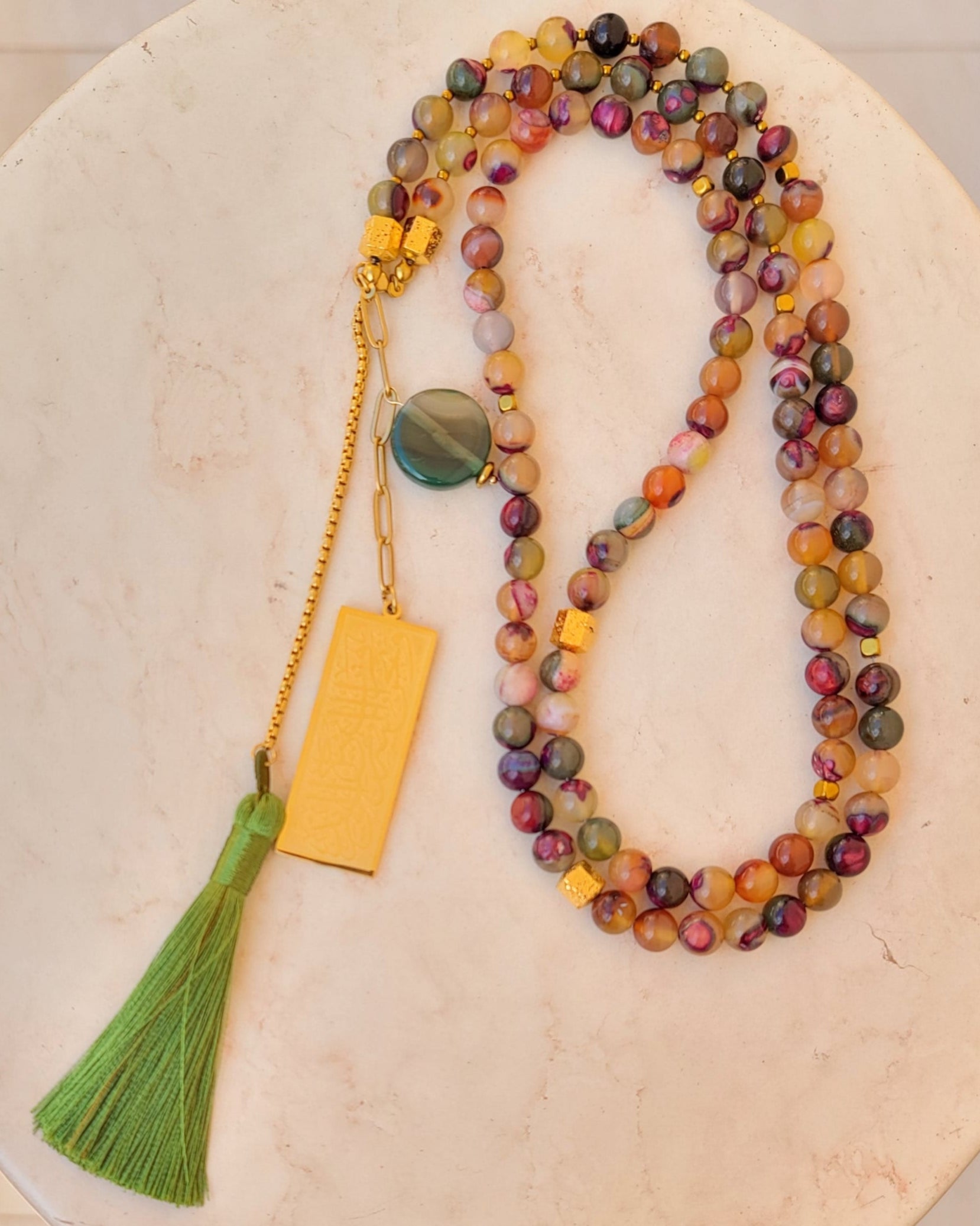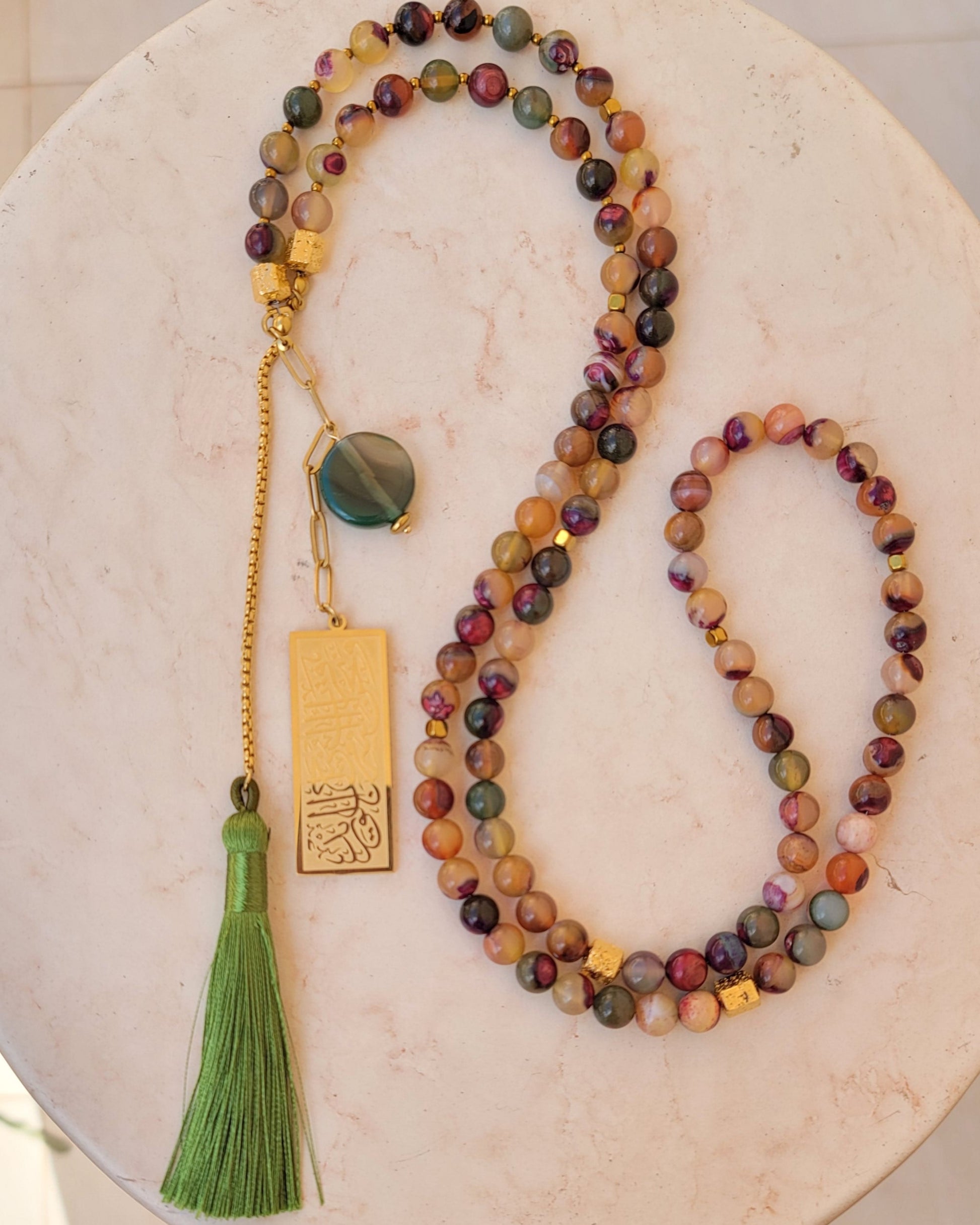 - 99 agate sebha with silk tassels