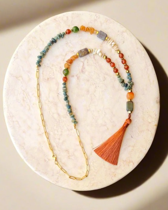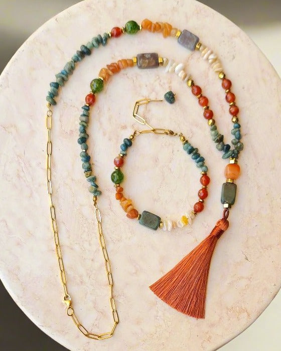Agate & Stone Chips Necklace & Bracelet Set