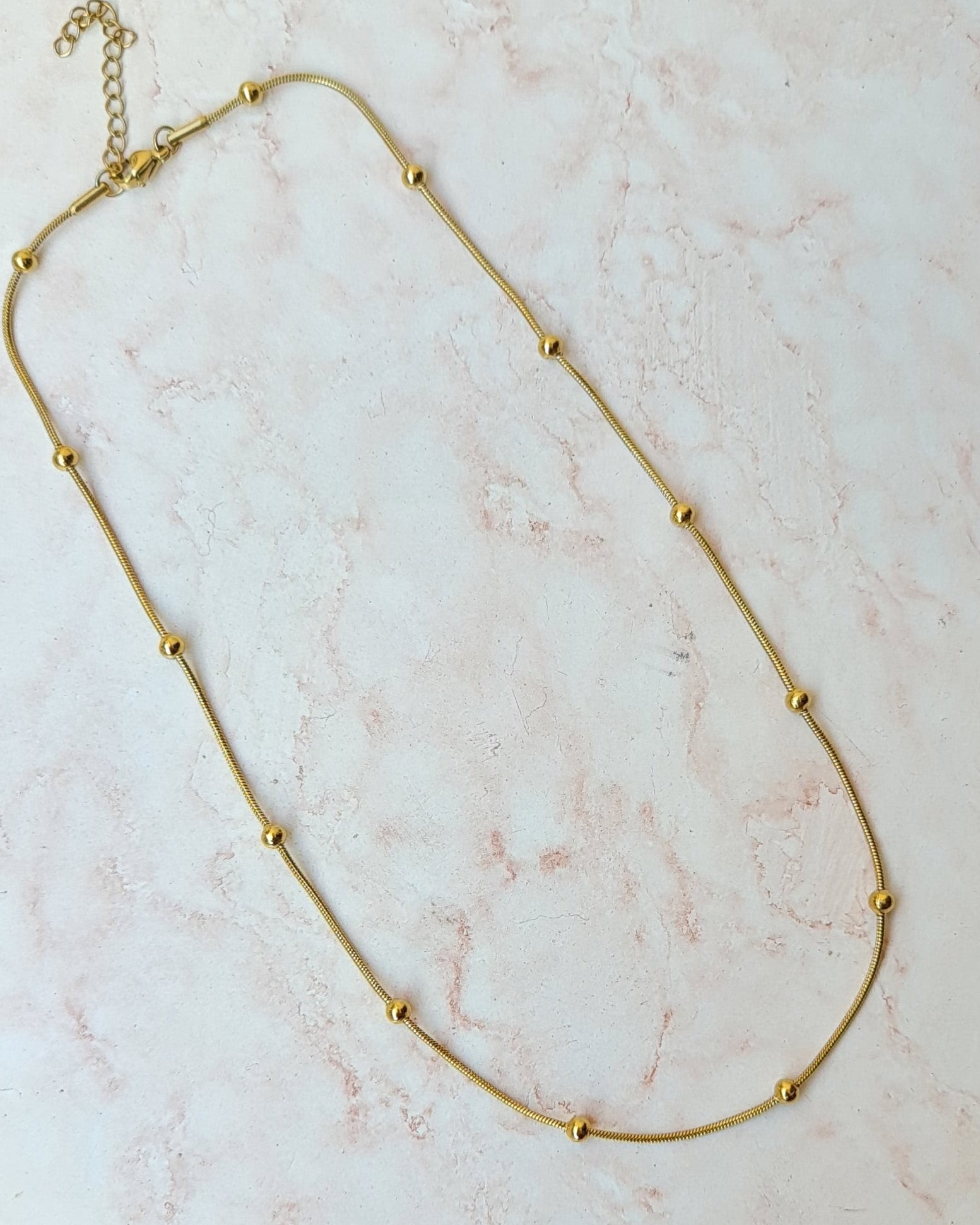 Gold Plated Stainless Steel Beaded Chain Necklace