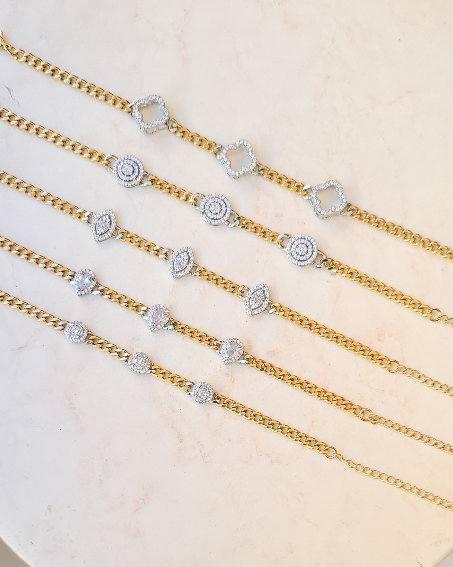 Gold Plated Stainless Steel Bracelets With Zircon Stones