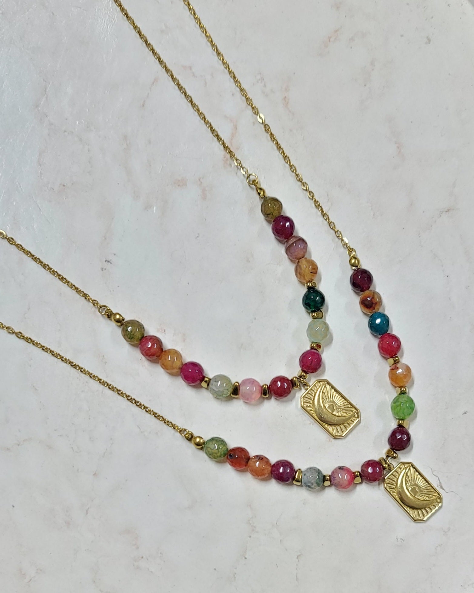 Multicolor Agate Necklace With Stainless Steel Pendant