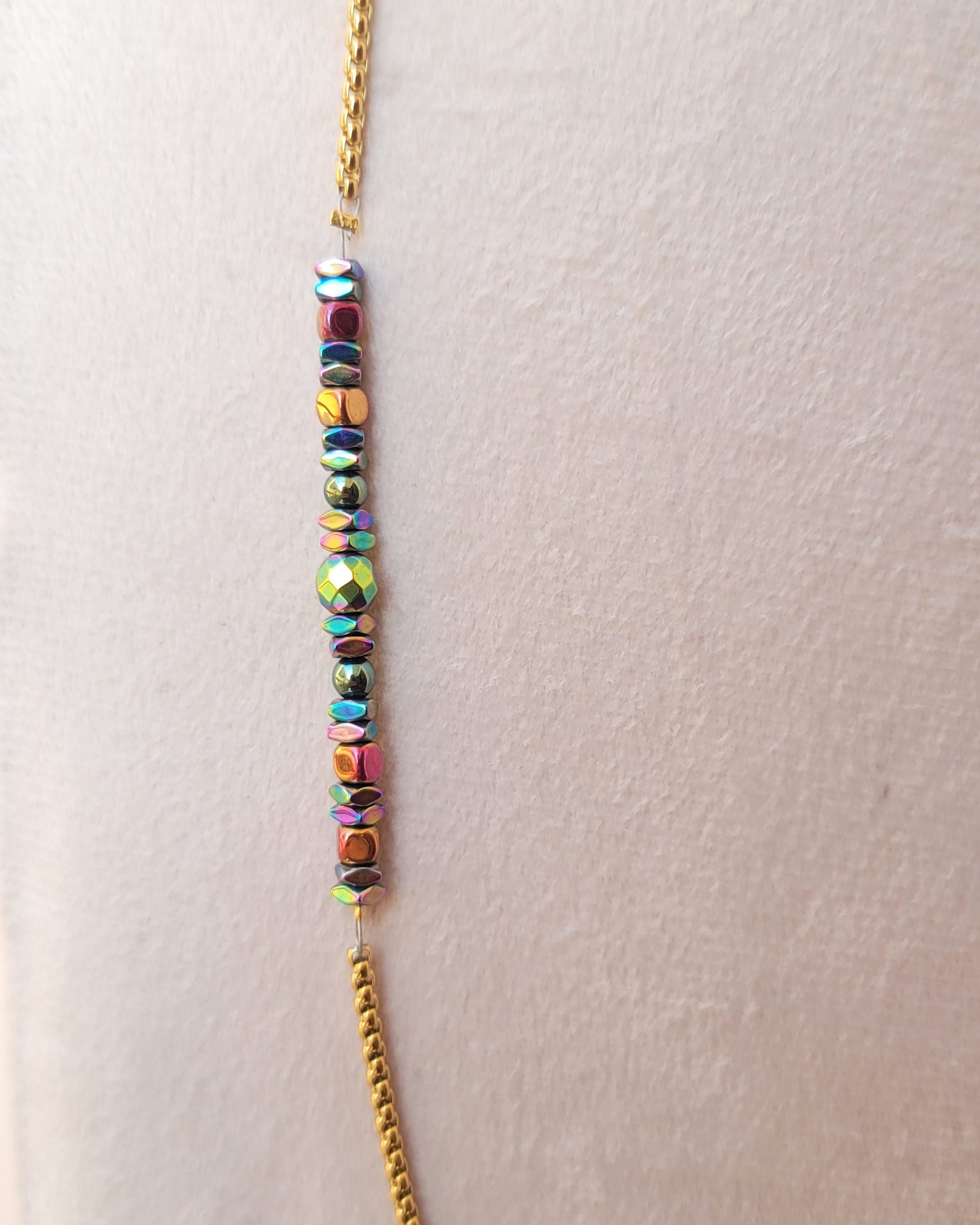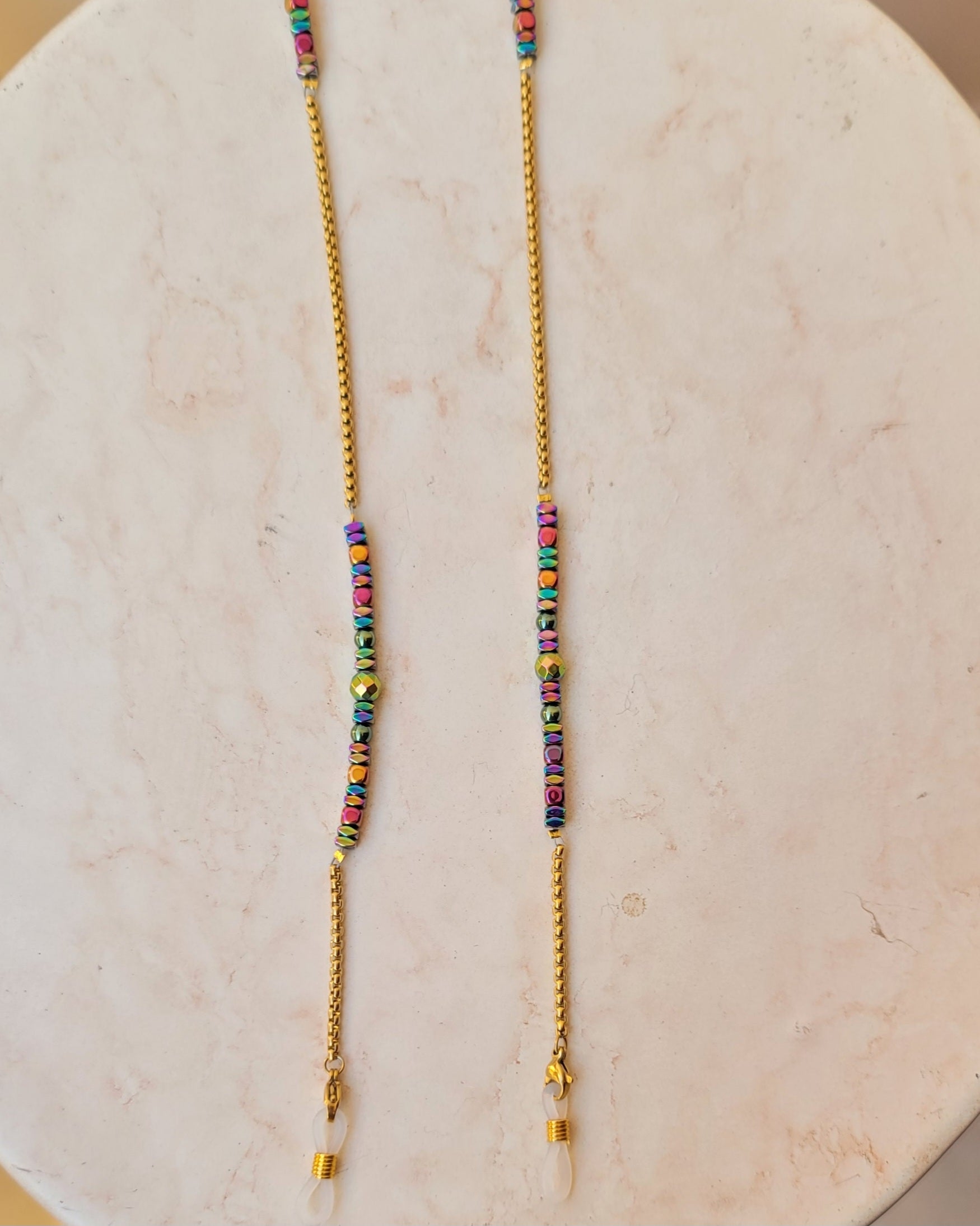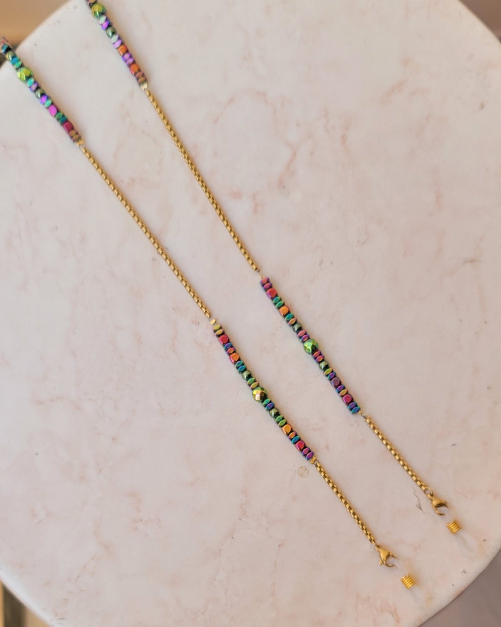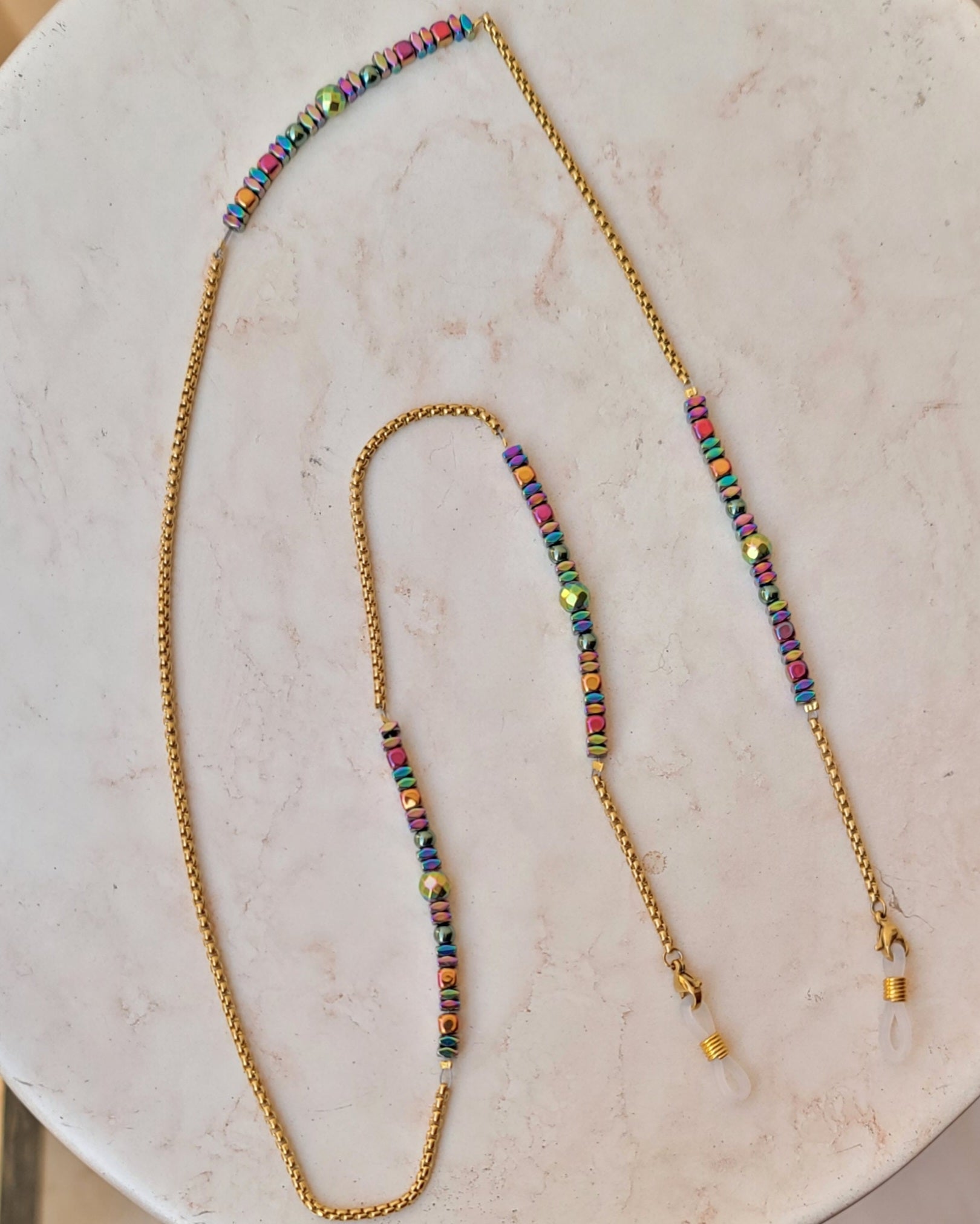 - Gold plated stainless steel chains with colorful hematite Sunglasses Cord / Chain .