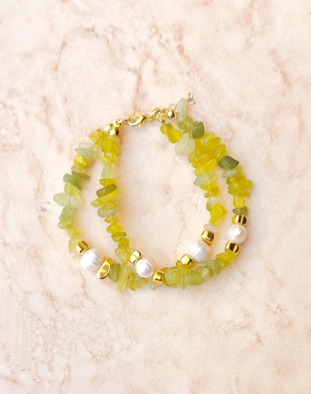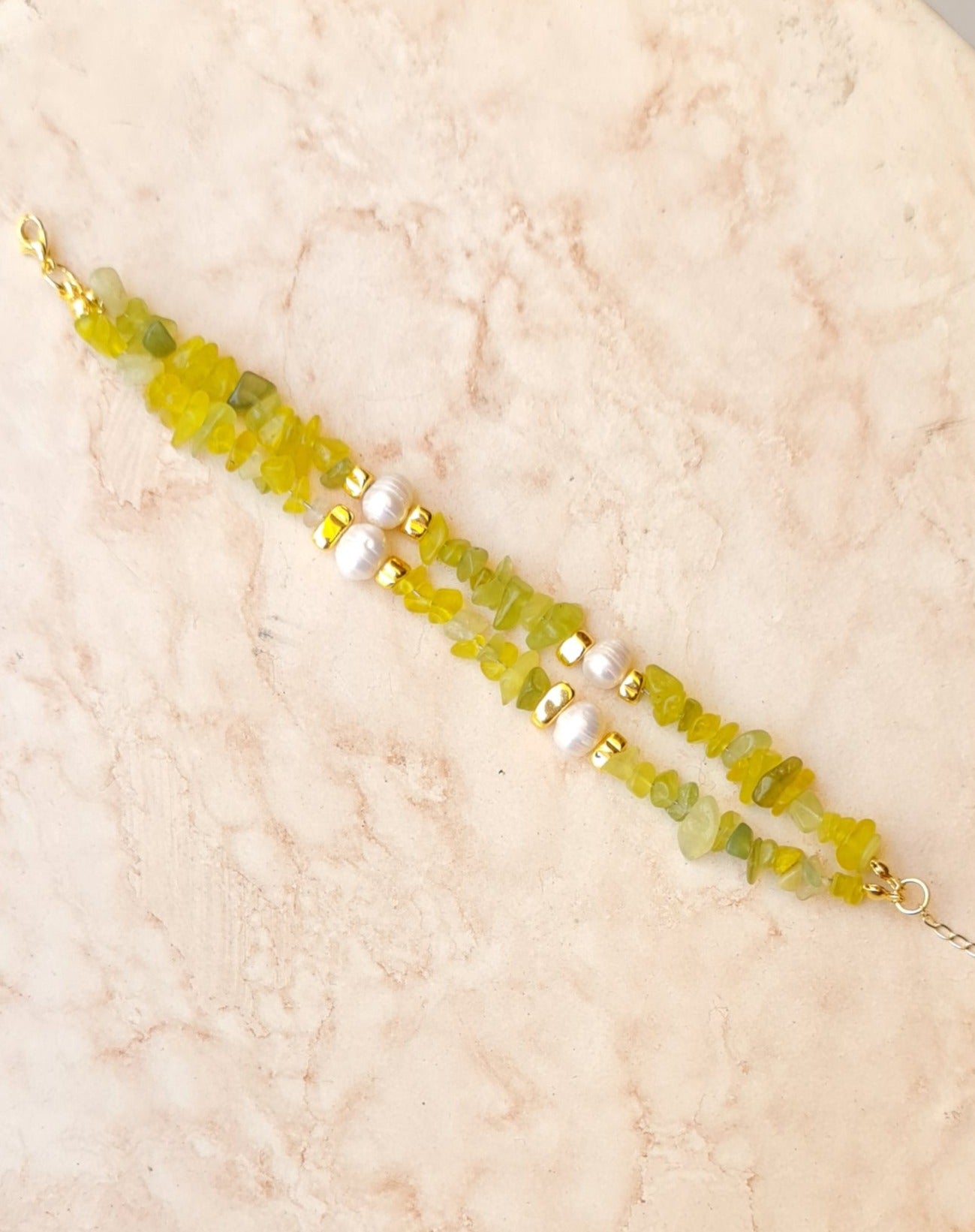 Stones & Fresh Water Pearls Two Layers Bracelet