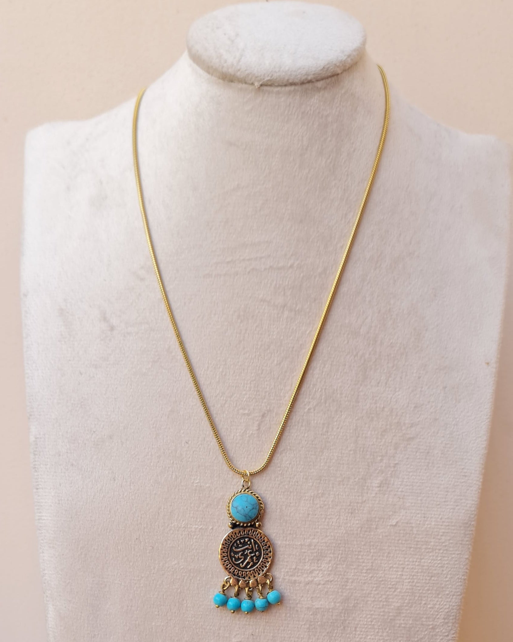 - Copper and stones pendants with gold plated stainless steel chains and lock .